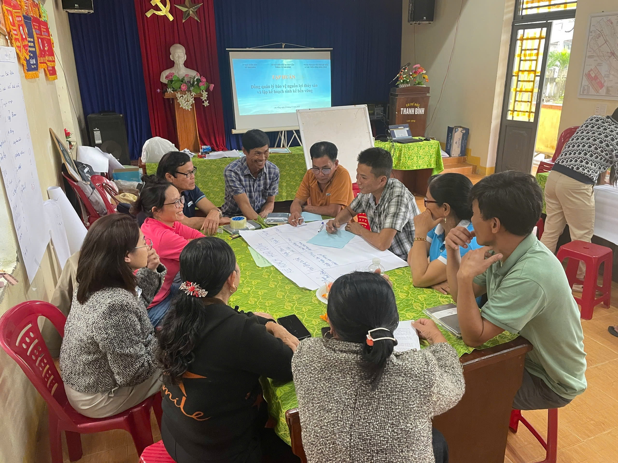 Building on on-going initiatives supporting the implementation of co-management in fisheries resource protection under the 2017 Fisheries Law, from 18–19 December 2025, the Centre for Marinelife Conservation and Community Development (MCD), in coordination with the Da Nang Sub-Department of Seas, Islands and Fisheries and the People’s Committee of Tam Xuan Commune, organized a training program on co-management and sustainable livelihood planning in Tam Xuan Commune, Da Nang. The activity aimed to strengthen the capacity of community groups and enhance coordination and planning skills for implementing co-management in fisheries resource protection in the Ba Dau Reef marine area. At the same time, it promoted sustainable livelihood planning as pathway to reduce destructive fishing practices (including bottom trawling) and to conserve coral reef ecosystems.